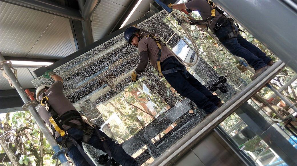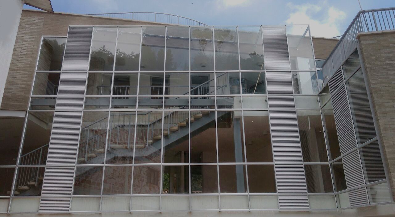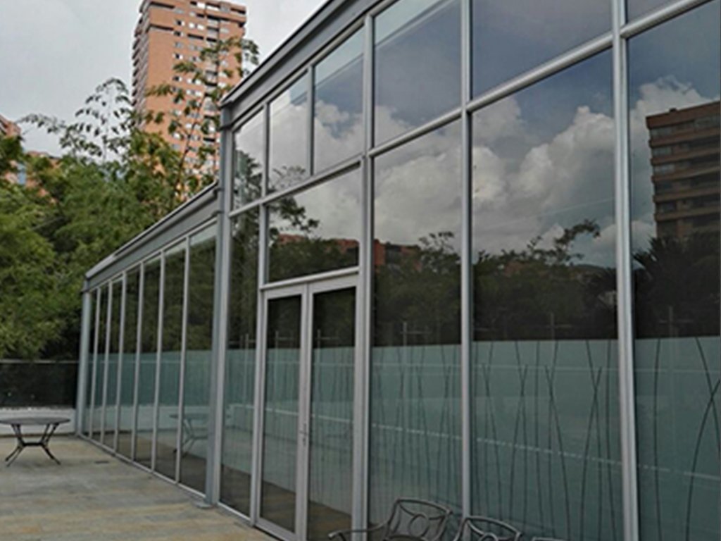 Cerramiento fabricado en vidrio de seguridad templado y perfileria con acondicionamiento acústico, que proporcionan control de luminosidad y ruido