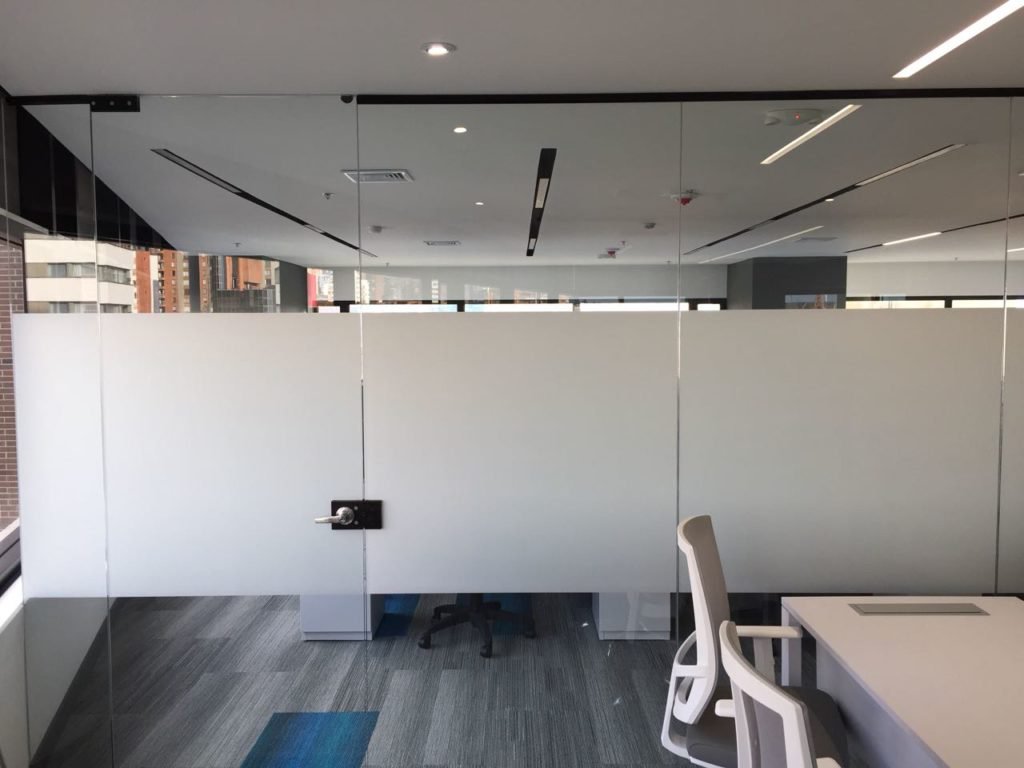 Divisiones fabricadas en aluminio y vidrio decorativo, que ayudan a optimizar y adecuar espacios interiores